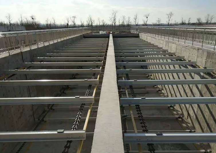 刮泥机布设浮渣折刀、浮渣粑板、清渣斗3个预制构件,可将河面悬浮物刮进浮渣型管排出来,在承重梁上配有电动式清理刷紧跟着联袂打转,用以清理出水堰壁长出绿苔,在实际操作刮泥机遇好按部就班下面的流水线实际操作,以免机械设备出现异常。
